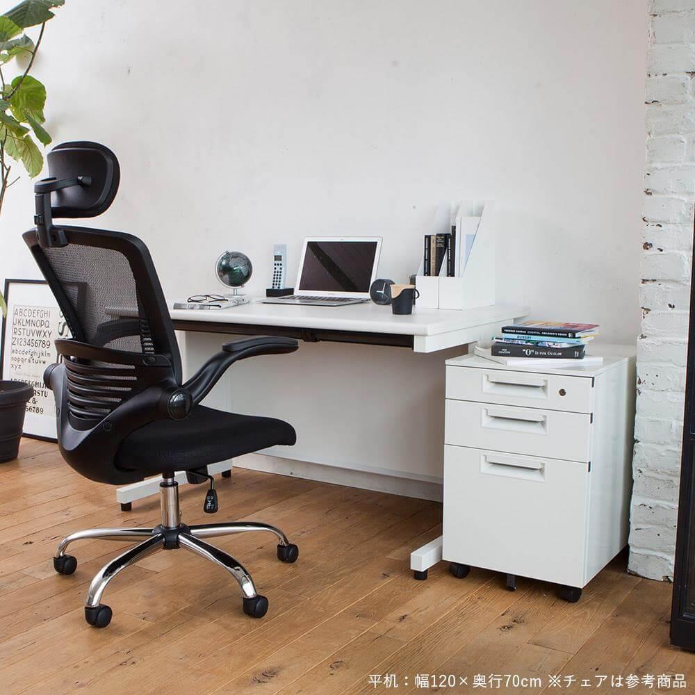 足元が広く使いやすい平机タイプ、幅100・110・120・140cm、奥行60・70cmの組み合わせから選べます。