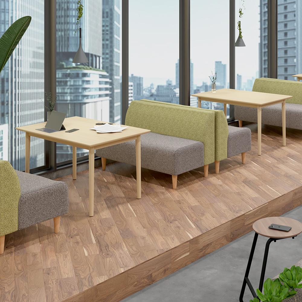 通常のワークテーブルよりも少し低めの高さ68cmで、ゆるやかな空間を演出できます。
