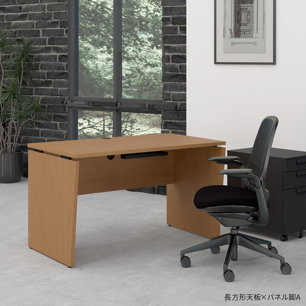 カスタマイズデスク 長方形天板 ミディアムウッド パネル脚