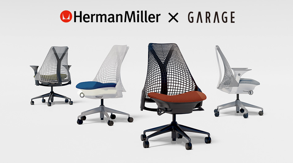 HermanMillerセイルチェアのGarageセレクトカラー。フレームのない背もたれが身体を支え、
